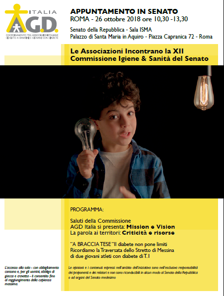 Le Associazioni di AGD Italia incontreranno Venerdì 26 ottobre i componenti della XII Commissione Igiene & Sanità del Senato per condividere con le Istituzioni i problemi assistenziali ancora irrisolti dei genitori di bambini con diabete di T.1.