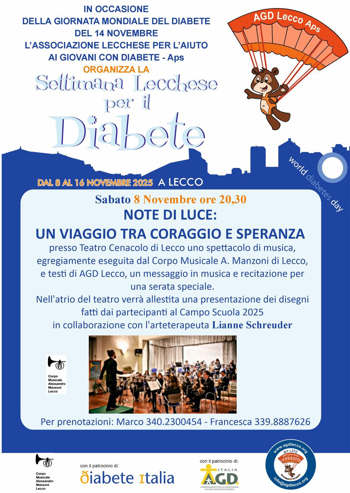 In occasione della Giornata Mondiale del Diabete AGD Lecco organizza per sabato 8 novembre presso il Teatro Cenacolo di Lecco lo spettacolo NOTE DI LUCE – Un viaggio tra coraggio e speranza.