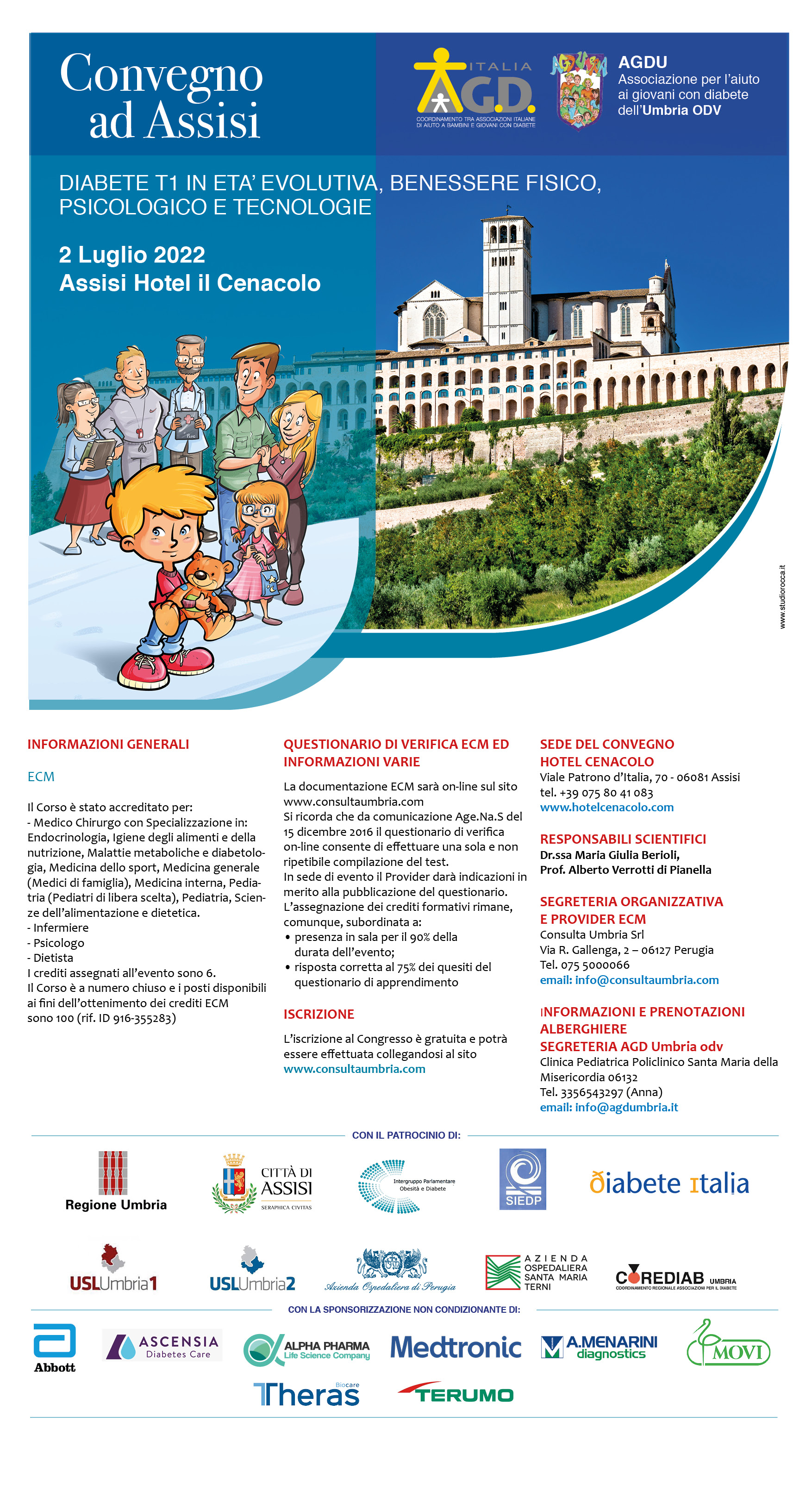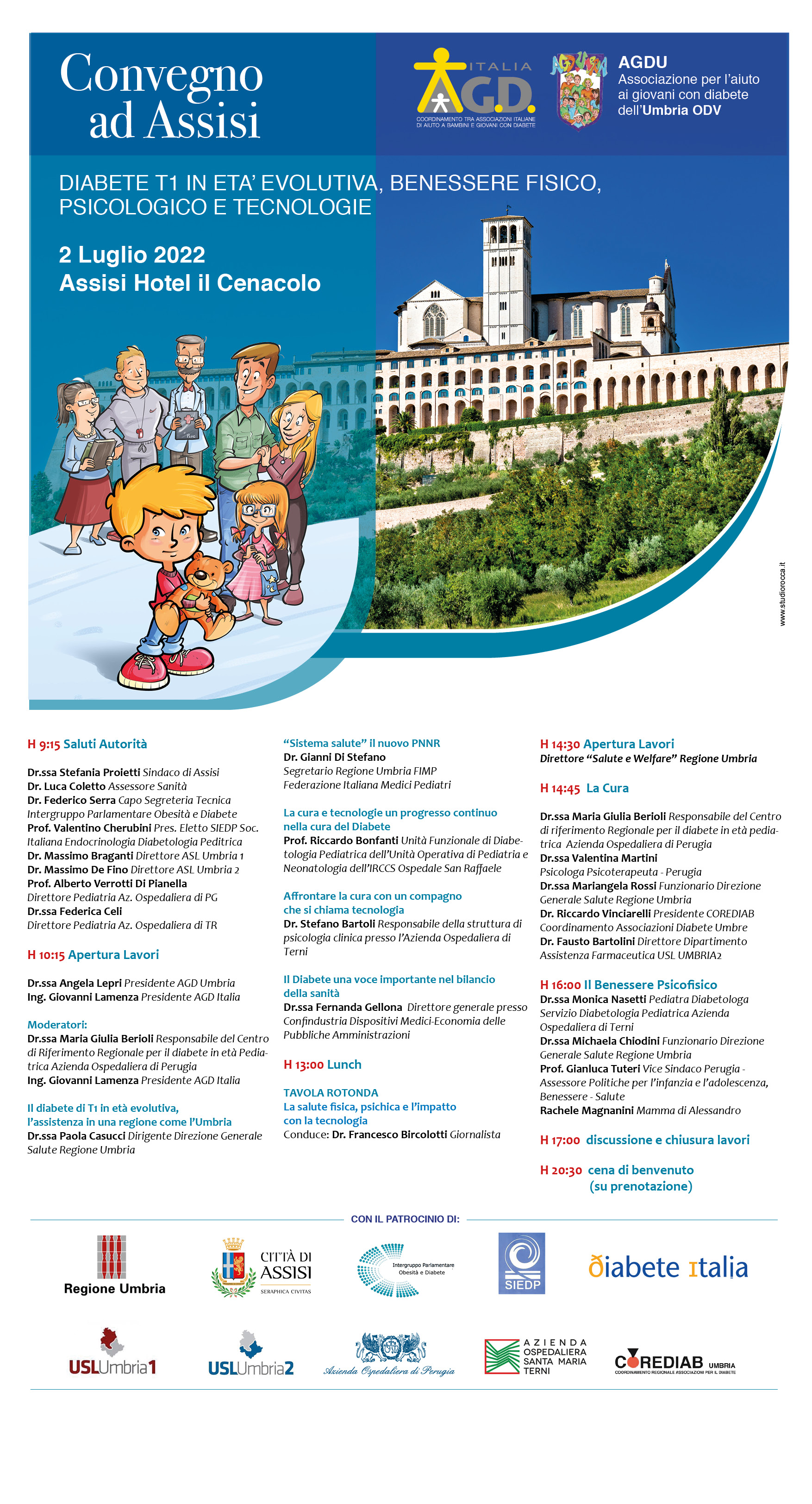 “DIABETE T1 IN ETA’ EVOLUTIVA, BENESSERE FISICO, PSICOLOGICO E TECNOLOGIE” è il titolo del Convegno che avrà luogo il 2 luglio 2022, presso il Cenacolo Francescano di Assisi, organizzato da AGD Umbria ed AGD Italia.