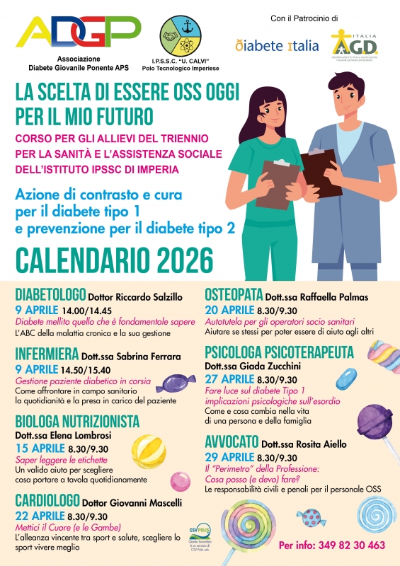 Quinto anno consecutivo per Associazione Diabete Giovanile Ponente Aps che anche quest’anno organizza una serie di incontri con gli allievi del triennio sociosanitario dell’istituto IPSS “U.Calvi” del Polo Tecnologico Imperiese.