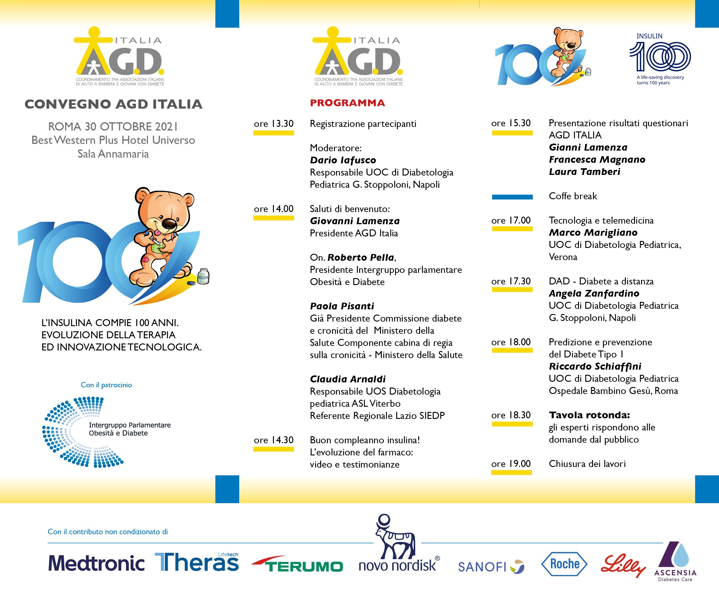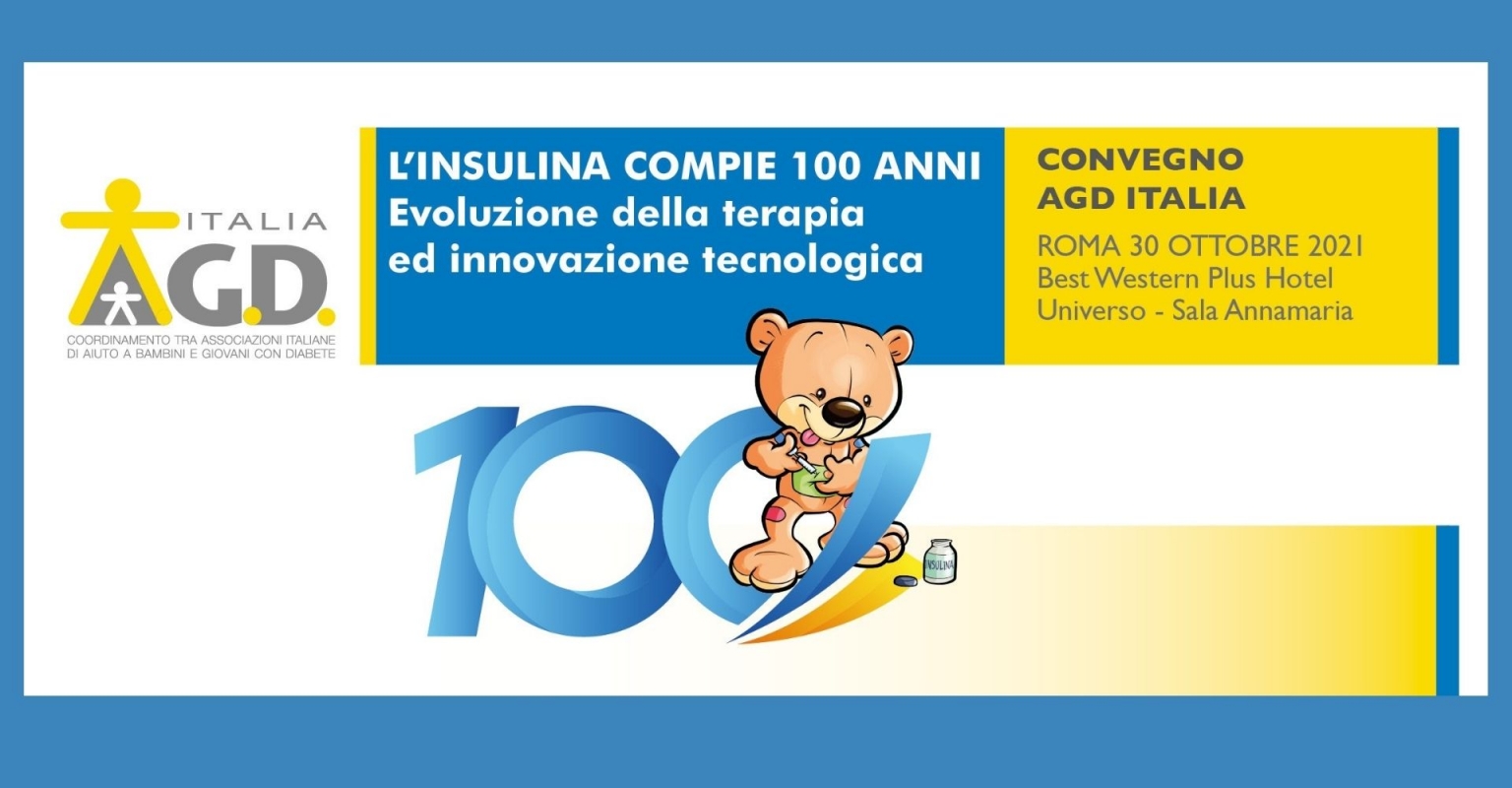 “L’Insulina compie 100 anni - Evoluzione della terapia ed innovazione tecnologica” è il titolo del Convegno organizzato da AGD ITALIA per il prossimo 30 ottobre a Roma presso il Best Western Plus Hotel Universo a partire dalle 13,30 che vedrà la partecipazione di importanti relatori; sarà l’occasione per ascoltare significative testimonianze e per assistere alla proiezione del video “Buon compleanno Insulina” realizzato dal nostro Lino.