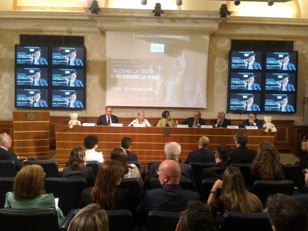 AGD Italia ha presentato mercoledì 20 Giugno 2018, presso la Sala Nassirya in Senato, la Campagna di Comunicazione ‘Accendi la testa e fai girare la voce’ per far luce su una malattia in costante aumento, con diagnosi in età sempre più precoce e che in Italia colpisce oltre 20.000 giovani.